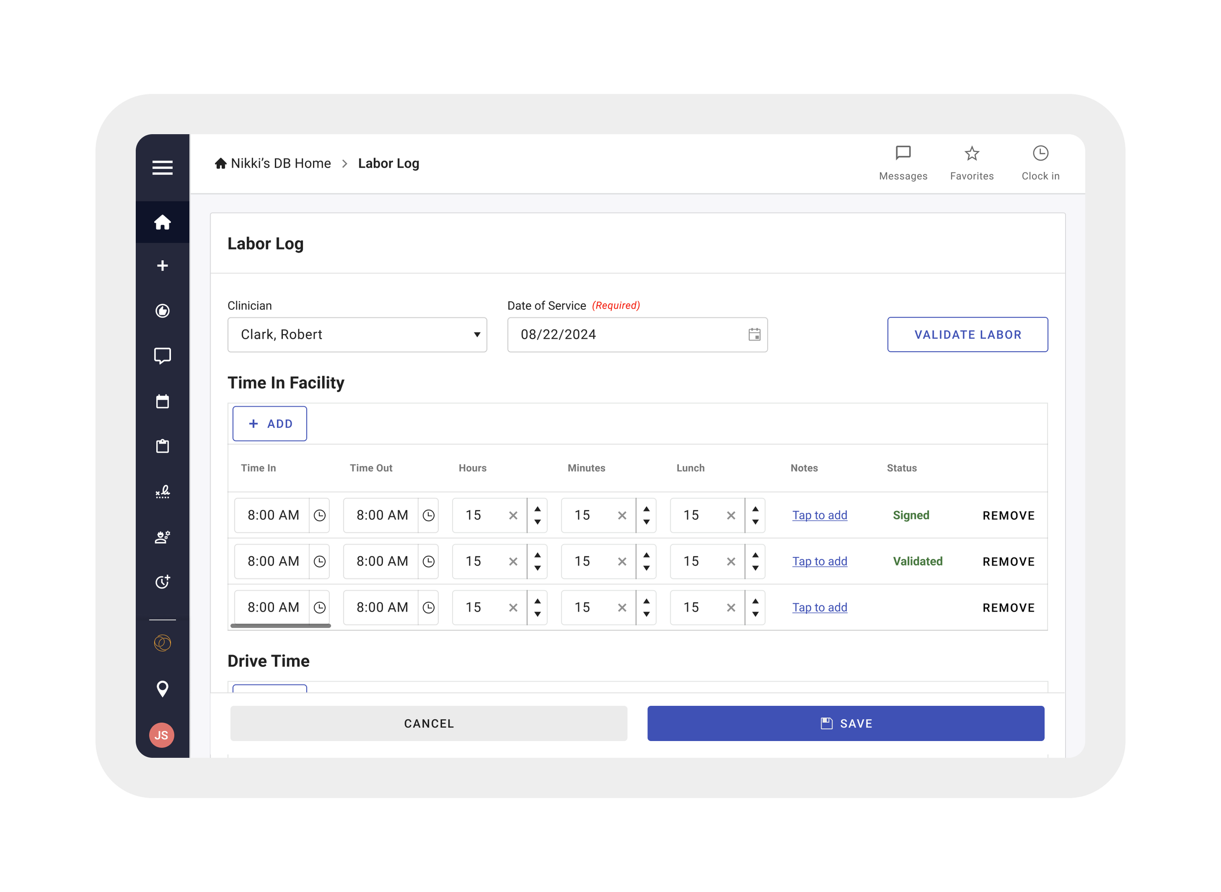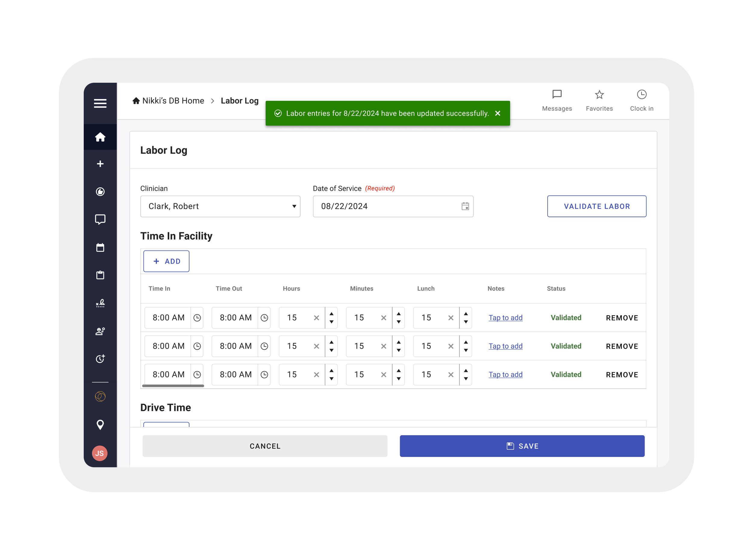 Labor Log was redesigned for clarity and ease—helping therapists track and validate their work with fewer steps.