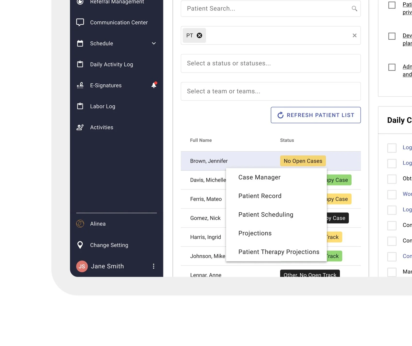 We simplified the home page to emphasize a therapist’s daily tasks and patient list.